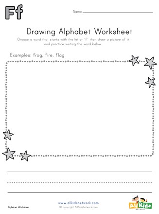 Awesome worksheet for kids learning the letter F. Kids are instructed to think of something that starts with the letter "f" (ex. frog, fire, flag), draw a picture of it, and then write the word on the line provided.