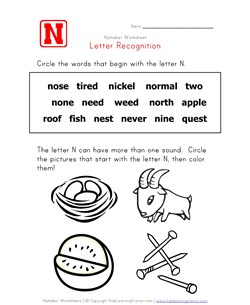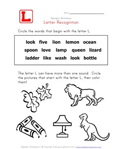 This collection of letter recognition worksheets features one worksheet for each letter of the alphabet. Each worksheet asks kids to circle all the words that start with the letter in the word bank. Then they are to circle each of the pictures that start with the letter.