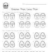 Follow the instructions and color the Easter baskets, Easter eggs and jelly beans that are greater than or less than.