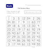 Follow the odd numbers in order from 1 to 49 to get through this maze worksheets.