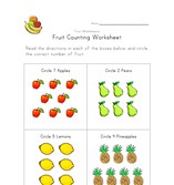 Count and color the correct number of apples, strawberries, oranges and pears.