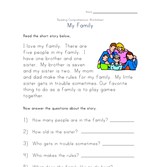 Read the short family related story and then answer each of the questions about the story on the lines provided.