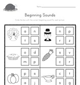 Look at each Thanksgiving thing and circle the letter that begins the word.
