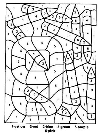 Follow the color key instructions to complete this picture of the number 9 and crayons.
