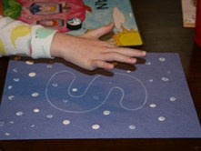 Trace it onto a piece of blue construction paper using a white crayon or colored pencil.