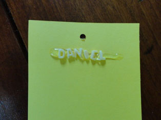 - Glue the letters of your name to the bookmark, about 1 inch from the top of the cardstock. Let the glue dry. (see photos)