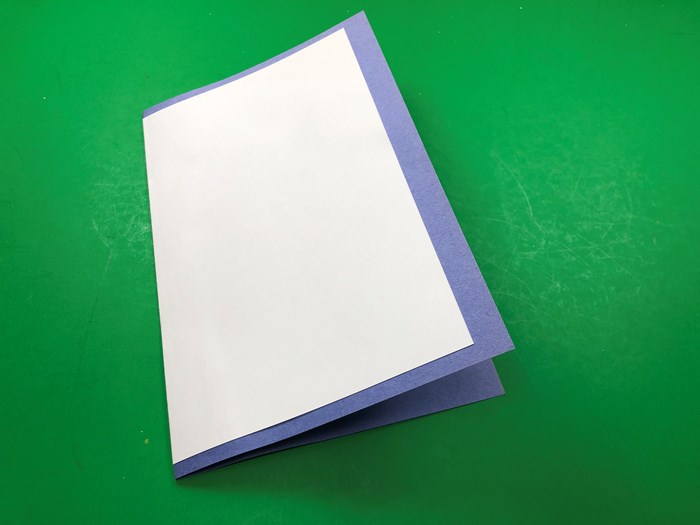 Then, using a glue stick, glue the white cardstock onto the center of the blue construction paper.