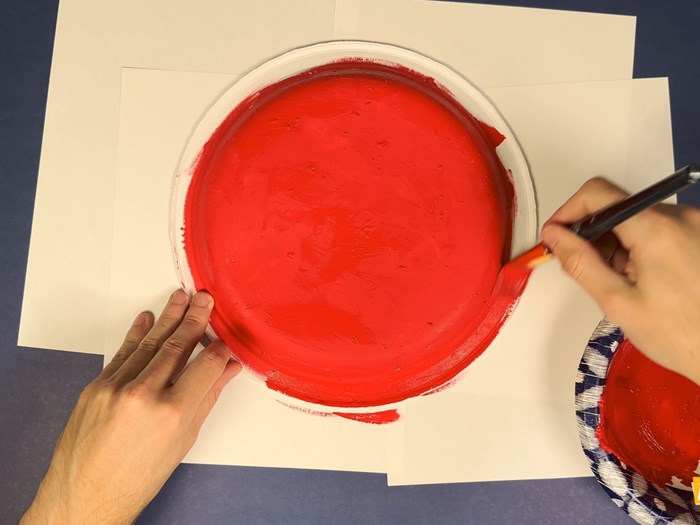 Paint the paper plate red.