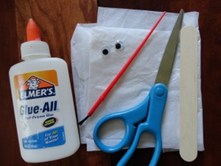 Wrap the strips of white tissue paper around the Popsicle stick. Make sure to wrap the tissue paper in opposite directions so that it looks more like mummy wrappings. Continue wrapping until there is no glue showing. (see photos)