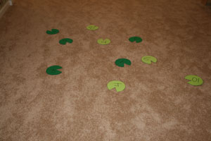 Jumping and learning all at the same time makes for a very fun way to pass the time. A few sheets of green craft foam, a pair of scissors and a Sharpie marker are all you need to make this fun game. The best part is that there are so many games you can play with them and it is easy to adapt them to any child's skill level or learning needs. For younger children call out a number and have them hop to it or have them hop in order from one to ten. For older children call out a simple math problem and have them hop to the number, or have them hop on all evens or odds. You don't need to be limited by numbers either. We have a set with numbers on one side and sight words on the back. Don't forget to put on your frog hat crafts to play!