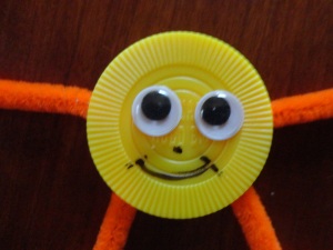 - Using glue, glue the four pipe cleaners to the sides and bottom of your pieces of junk to form the arms and legs. Allow the glue to dry. (see photos)