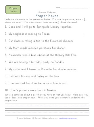 Underline the nouns in the sentences below. If it is a proper noun, write a P above the word. If it is a common noun, write a C above the word.