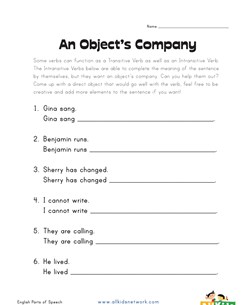 Help kids learn about transitive and intransitive verbs with these free worksheets. Transitive Verbs are verbs that require a direct object, while Intransitive Verbs are verbs that do not have a direct object receiving the action. Kids get to practice their recognition of each as well as find their direct objects with these worksheets.