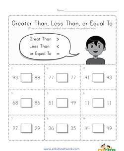 We have several different types of greater than or less than practice worksheets for you to choose from below. Some of them also cover the concept of equal amounts. All of these free worksheets are designed to go well with any preschool math lesson plan when teaching these basic concepts.