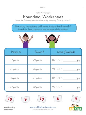 How many more points did one person score than another? Solve each problem and round to the nearest whole number.