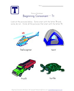 This set of printable phonics worksheets focuses on words that begin with each consonant in the alphabet. We have one worksheet dedicated to each consonant in the alphabet. Each worksheet contains pictures that start with different letters of the alphabet and kids are asked to circle the ones that start with a specific consonant. This makes a great language arts worksheet and is perfect for any phonics lesson plan.