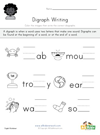 Students write the digraphs wa, mou, and ab to finish the words, improving early literacy and phonemic awareness. Coloring the images adds fun to this phonics-driven activity.