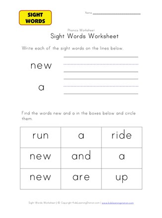This printable sight words worksheet focusses on teaching the words new and a. Kids are first asked to write each word on the lines provided. Then they are asked to look at all the words in the boxes at the bottom of the page and circle only the boxes that contain the sight words new and a. Help teach kids the sight words new and a with this printable worksheet and make sure to check out the rest of our teaching sight words worksheets for kids!