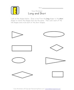 Help teach children the concept of length (long and short) with these printable size worksheets. Learning length is part of a toddler's preschool curriculum and this set of worksheets is a perfect collection of printable pages to help them learn long and short. Check out our worksheets designed to help teach the concept of length; long, longer, longest, short, shorter and shortest.