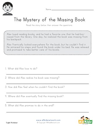 In this reading comprehension worksheet, students will follow Alex as he searches for his beloved missing book. Through engaging narrative and thought-provoking questions, children will explore themes of responsibility and problem-solving. Alex's journey to find his book under his bed after retracing his steps provides a valuable lesson in taking care of personal belongings. This worksheet is perfect for elementary students looking to improve their reading skills while enjoying a relatable mystery.