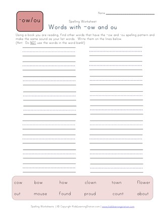 Spelling Worksheets for Words with -ow and -ou Pattern