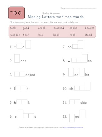 -oo Words Spelling Worksheets