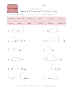 This set of 3rd grade spelling worksheets focuses on contractions. These spelling worksheets contain the words would've, could've, should've, I've, you've, we've, haven't, hasn't, aren't, that's, there's, and where's. We have five different worksheets so you can do a different one each day of the week. They were all created to be appropriate for 3rd grade spelling level, but can be used for any children that are ready for these exercises. Whether you need worksheets to help kids practice writing, finding missing letter or write sentences with contractions, these are the perfect worksheets.