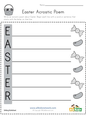 Write an acrostic poem about Easter. Begin each line with a word or sentence that starts with the letter on that line.